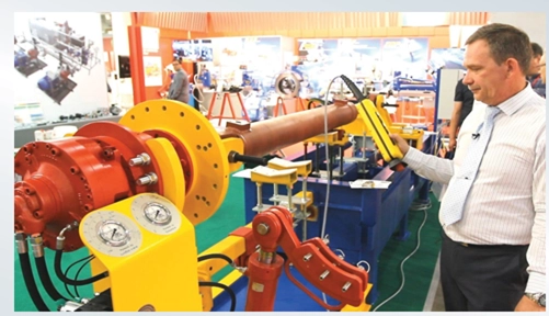 Еще одна новинка компании ООО «ПНЕВМАКС» позволяет разбирать гидроцилиндры с диаметром гильзы до 500 мм и максимальным габаритном размере (при выдвинутом штоке) до 6,5 м. В отличие от стандартных решений, когда гидроцилиндр устанавливается стационарно на силовую раму гидравлического гайковерта, специалисты «ПНЕВМАКС» использовали подвижную каретку. Оператор управляет работой стенда с дистанционного пульта, который позволяет выполнить все операции.