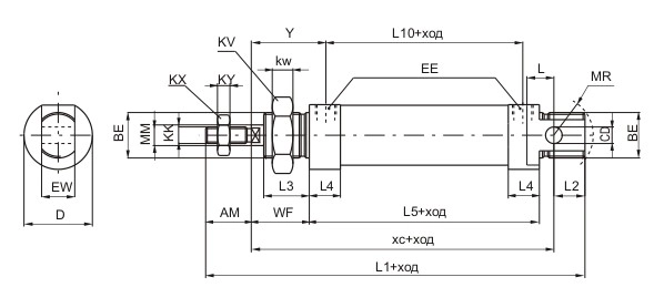 | 2 | Диаметр поршня | 12, 16, 20, 25 мм |