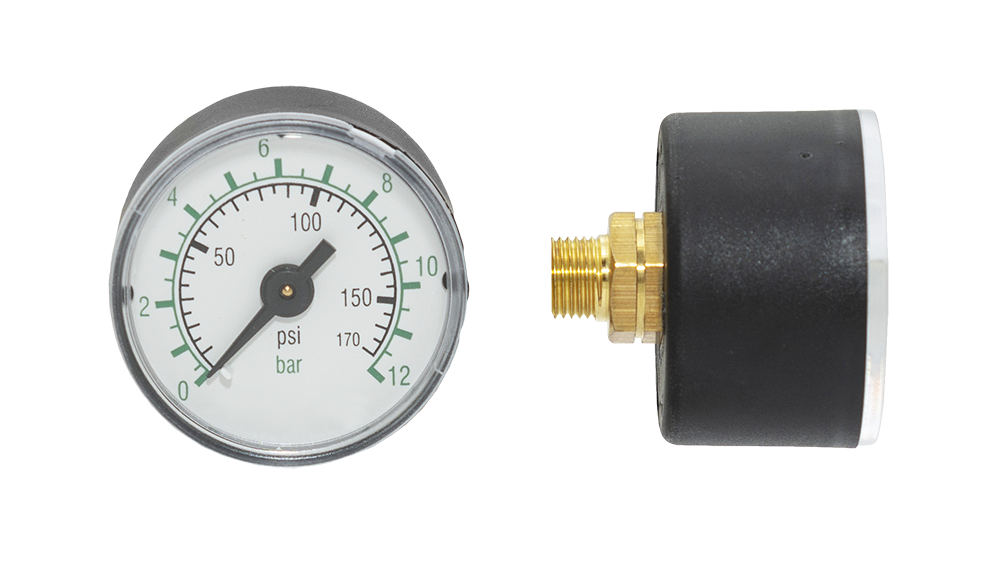 17070A.C - Манометр с осевым подводом воздуха (сзади), R1/8", 0..12бар, диаметр корпуса 40мм