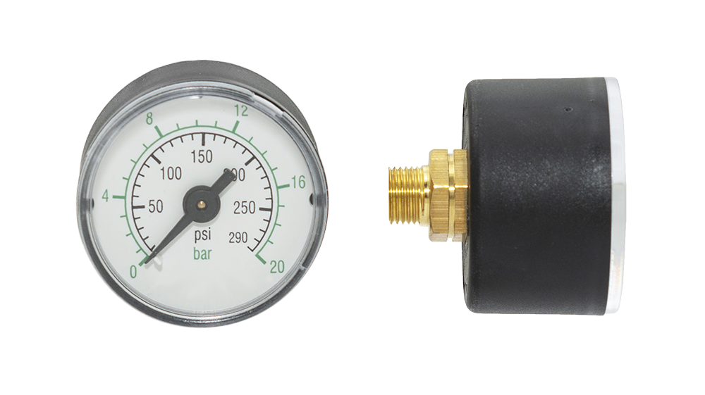17070A.E - Манометр с осевым подводом воздуха (сзади), R1/8", 0..20бар, диаметр корпуса 40мм