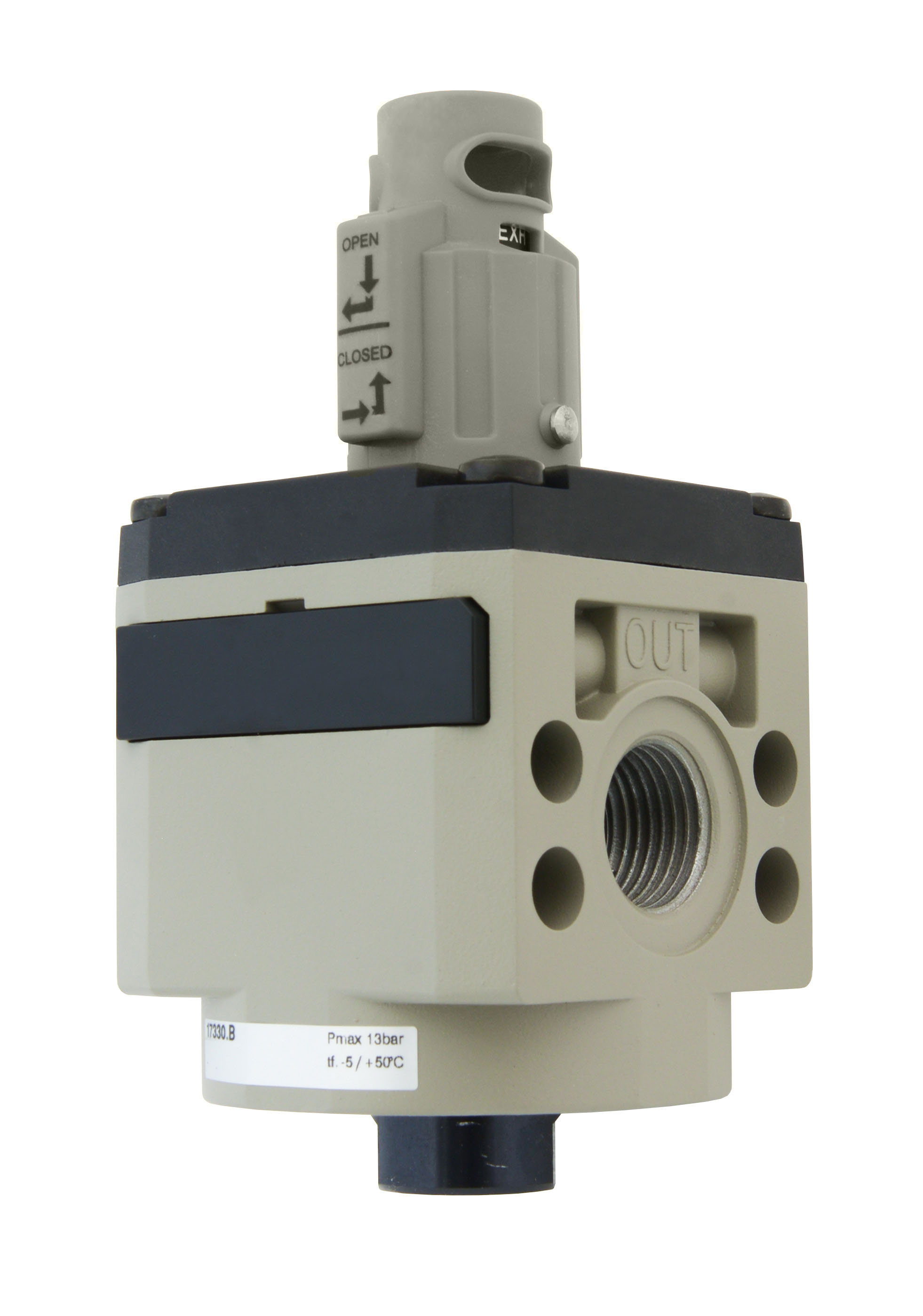 17330.B - Клапан отсечной G1/2’’, сброс G3/8’’, 2500 нл/мин, рукоятка с отверстием под дужку замка