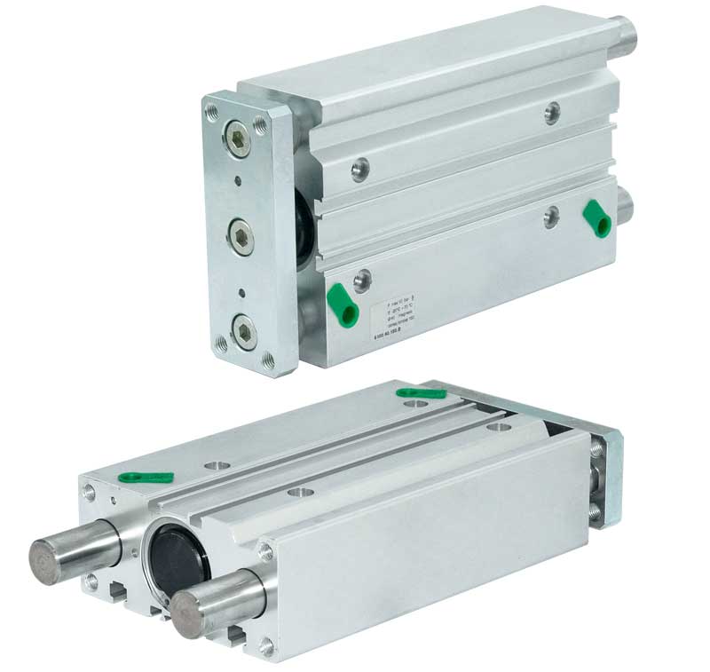 Цилиндр пневматический с встроенными направляющими серии 6100 используются в разных механизмах зажима, перемещения, робототехнике, также возможно использование в качестве управляемых упоров в различных транспортёрах.