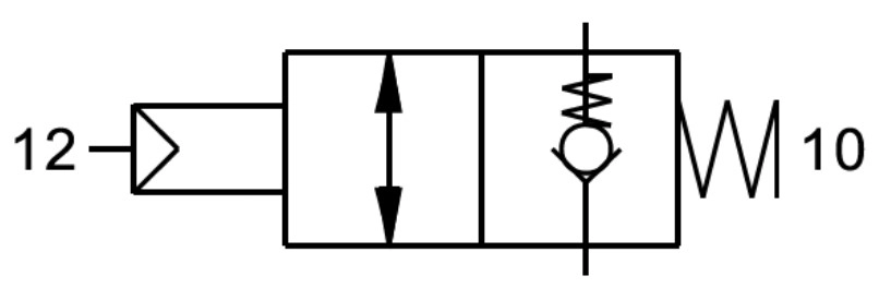6.09* - Клапан блокирующий: выполняет роль управляемого пневмозамка. Клапан обычно устанавливаются непосредственно на пневмоцилиндре для предотвращения случайного сброса сжатого воздуха из полости пневмоцилиндра и самопроизвольного движения штока цилиндра.