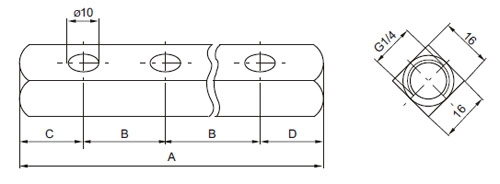 6.10.18* - Коллектор для батарейного монтажа распределителей G1/8" при помощи пустотелых винтов. Отверстие питания выполнено насквозь. Вместо распределителей можно монтировать и другие устройства, включая фитинги с внутренней резьбой.