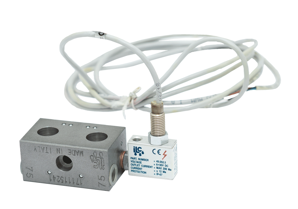 2.C.075.D.3I.SX - Конечная секция питателя DPX, 2 выхода по 75 мм3/цикл, индуктивный датчик слева (НО, PNP, =10-30В, 200мА. Кабель 3м)