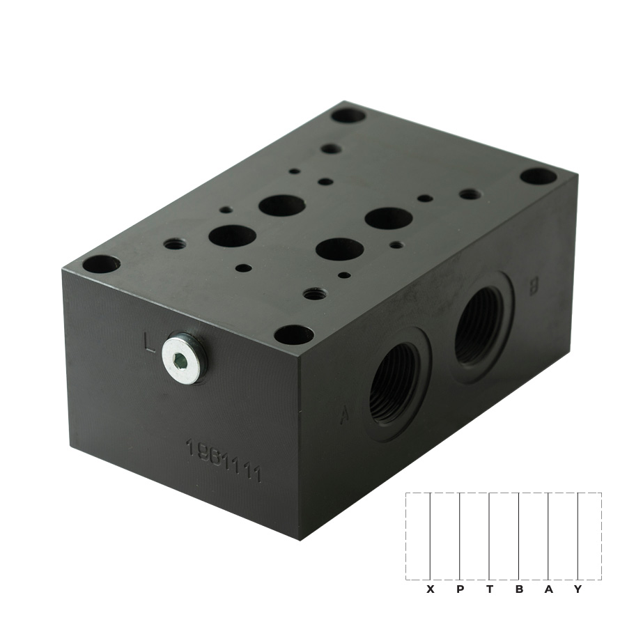 PME07-AL6G/10_1961111 - Плита для распределителей и клапанов, CETOP P07, P-T-A-B=G1", X-Y-L=G1/4", 350 бар, боковые порты, сталь