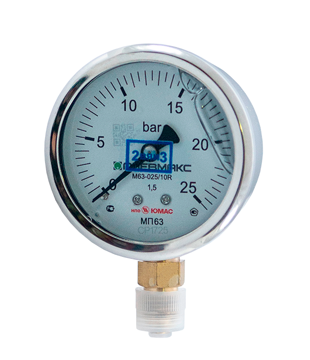 M63-025/10R - Манометр вибростойкий, 0-25 бар, присоединение радиально вниз, наруж. резьба G1/4"