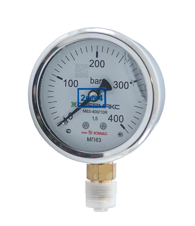 M63-400/10R - Манометр вибростойкий, 0-400 бар, присоединение радиально вниз, наруж. резьба G1/4"