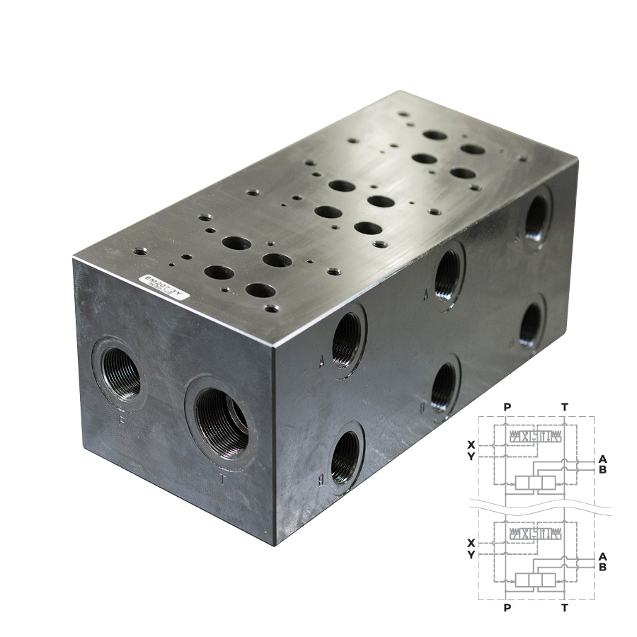 EM207/3Y - Плита для распределителей и клапанов, трехместная, CETOP 07, P-A-B= G1", T=G11/4", M=G1/4", сбоку