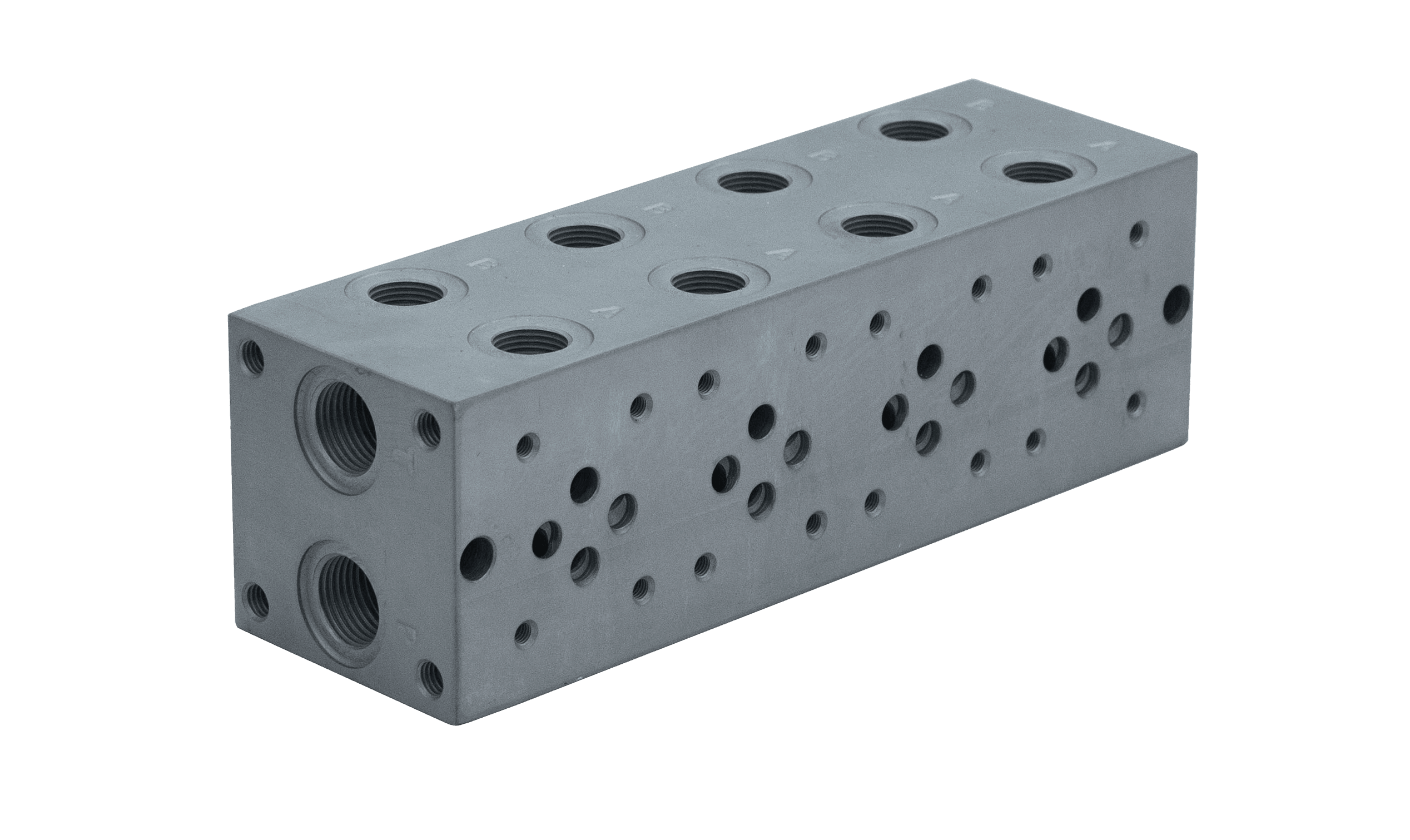EM213/4Y - Плита для батарейного монтажа, 4 места, СЕТОР 03, каналы сбоку, сталь, P и Т = G1/2", А и В = G3/8"