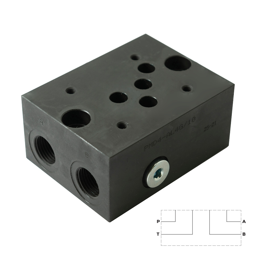 PMD4-AL4G/10_1960981 - Плита для распределителей и клапанов, CETOP 05, P-T-A-B=G1/2", 350 бар, боковые порты, сталь