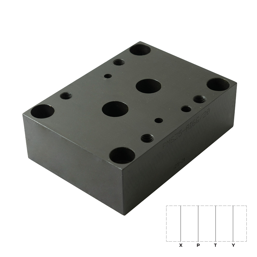 PMSZ5-AI6G/20_1961241 - Плита для монтажа клапанов, CETOP 08, E-U=G1", X-Y=G1/4", порты на задней панели, сталь