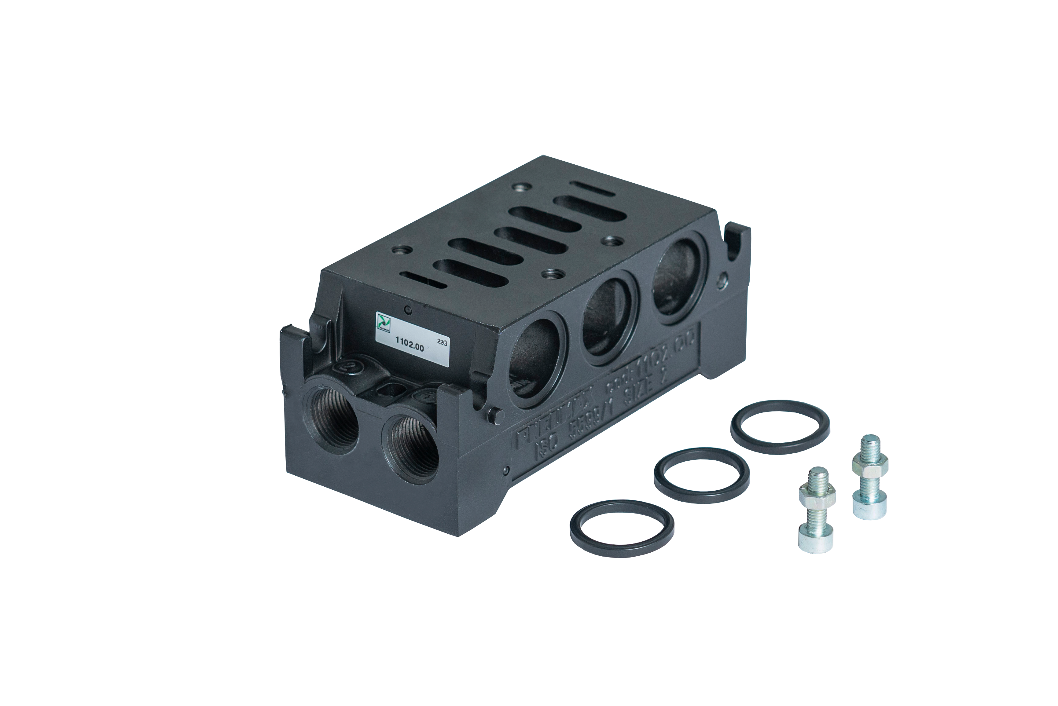1102.00 - Плита для блочного монтажа, ISO2, выходы G3/8" вниз и вбок, алюминий