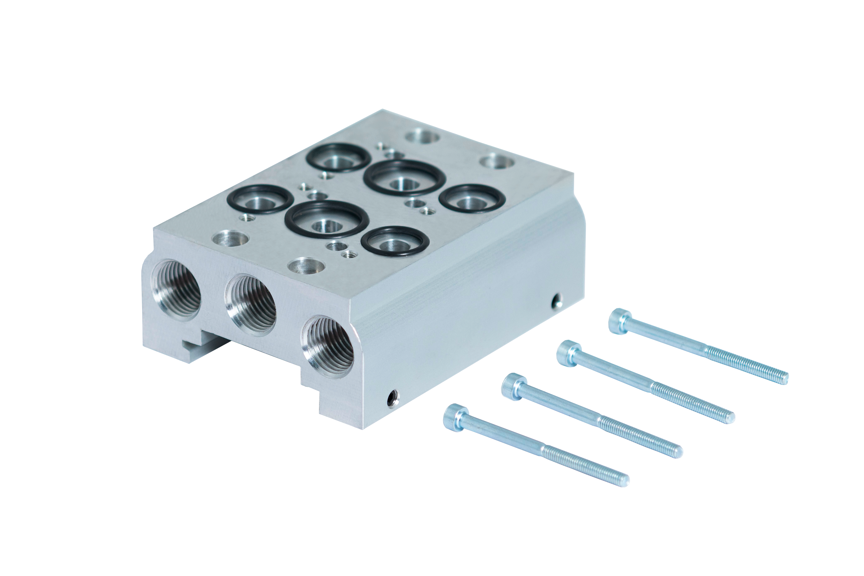 T488.02 - Плита коллекторная на 2 места, присоединение питания и сброса воздуха G1/4", алюминий