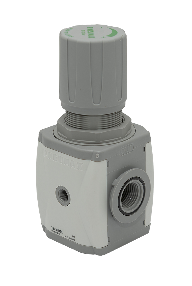 T173BRD - Регулятор давления модульного монтажа, G1/2", 0...12бар, 3500нл/мин, технополимер, отв. под манометр G1/8 заглушено
