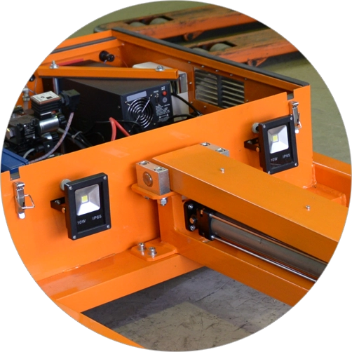Тележка вертолетная оснащена прожекторами ночной подсветки рабочей зоны. Мощные светодиодные прожекторы по 10 W (600Lm) достаточны для комфортной работы. Степень пылевлагозащиты IP65
