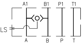 Плита модульная, CETOP 03, Ls=G1/4", клапан "ИЛИ" между А и В, для сигнала Ls - 6 л/мин, 40 л/мин, 350 бар.На выход клапана 1/4" подается наибольший сигнал по давлению из каналов А или В. Применяется для установки под пропорциональный распределитель или для выдачи Ls (Load Sensing) сигнала на регулятор расхода аксиально-поршневого насоса.