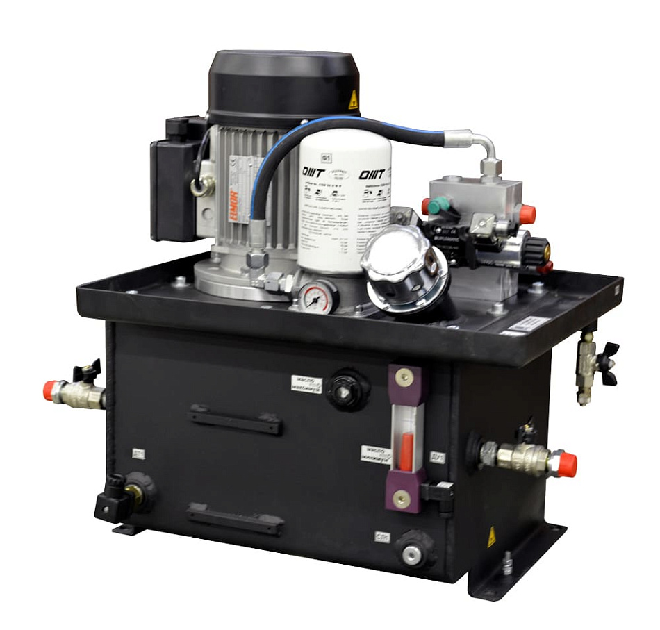 - На гидростанции установлены все необходимые датчики для удаленного контроля работы и обеспечения безопасности оборудования: контроль давления, максимальной температуры, опасного и аварийного уровня рабочей жидкости в баке, состояние фильтрующего элемента.