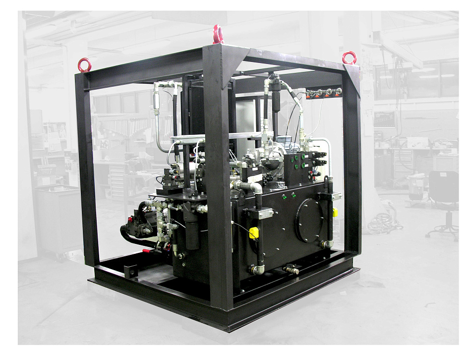 Агрегат включает в себя гидравлический резервуар с тремя силовыми насосами, аппараты кондиционирования, охлаждения и фильтрации рабочей жидкости, блок клапанов для управления гидромоторами и тормозом, а также электрическую систему управления, включая контроллер, и переносной пульт управления.
