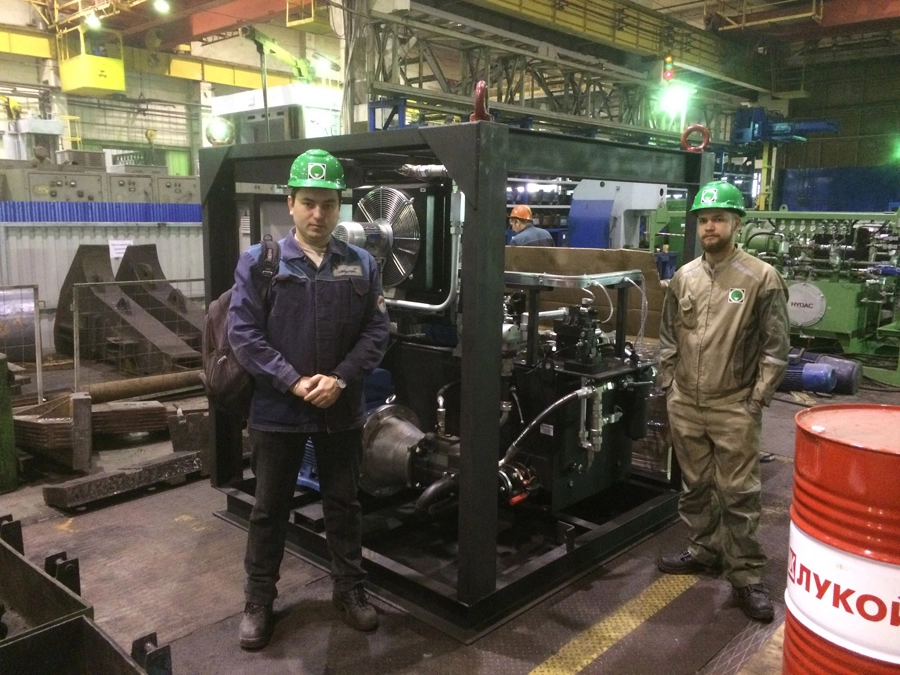 Силовая установка имеет три мотор-насосных группы, из которых одна отвечает за вращение шпинделя фрезы, вторая за перемещение головки траверсы и фиксацию траверсы, третья является частью контура системы охлаждения.