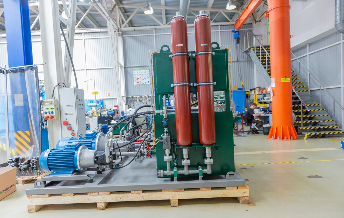 Разработана гидростанция для привода муфтонавёрточных станков участка навертки муфт на обсадные трубы. Система обеспечивает подачу рабочей жидкости с требуемыми параметрами расхода и давления и стабильную работу гидроприводов станочного оборудования.