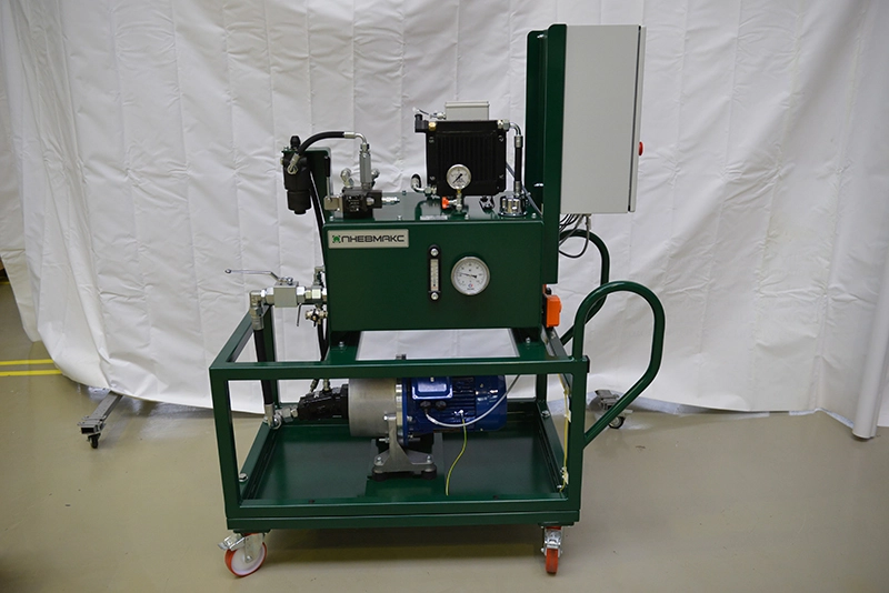 - Для облегчения процесса испытаний, а также для выполнения требований по мобильности, гидростанция выполнена на колесах.