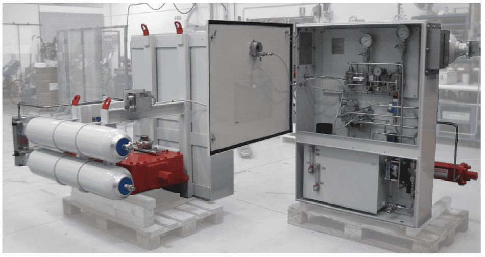 - Климатическое исполнение всей гидравлической аппаратуры (насос, гидравлический блок, гидроаккумуляторы, ручной насос, электрический шкаф управления и др.) на -60С°.